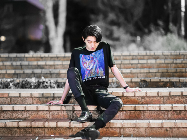 僕自身カメラマンとしても活動しており、Bandmerchでは、グッズ着用写真の出張撮影をやっています。グッズの良さがより引き立つ場所を予め調査し、主にバンドメンバーの方をモデルに撮影します。そこからバンド側の希望するイメージに近づぐよう写真をレタッチし、OKが出たらBandmerchサイト上に掲載します。 例えばMississippi Khaki Hairというバンドのグッズ撮影のときは、クジラの骨のデザインだったので、骨組み感のある背景を探しました。バンドのイメージが黒なので夜に撮影にし、レタッチはマットでダークな感じにしました。